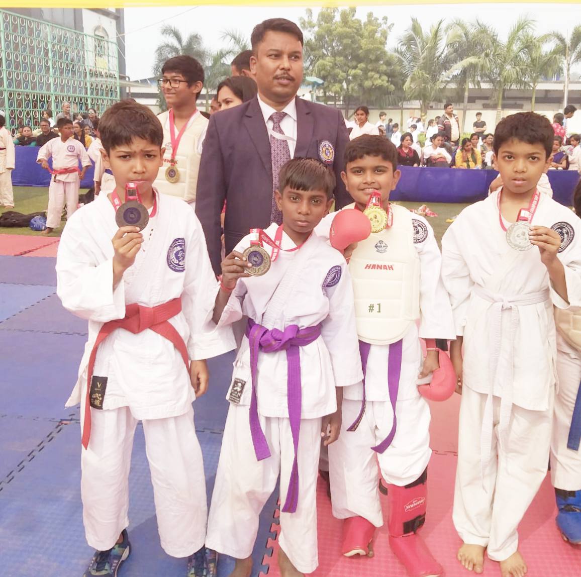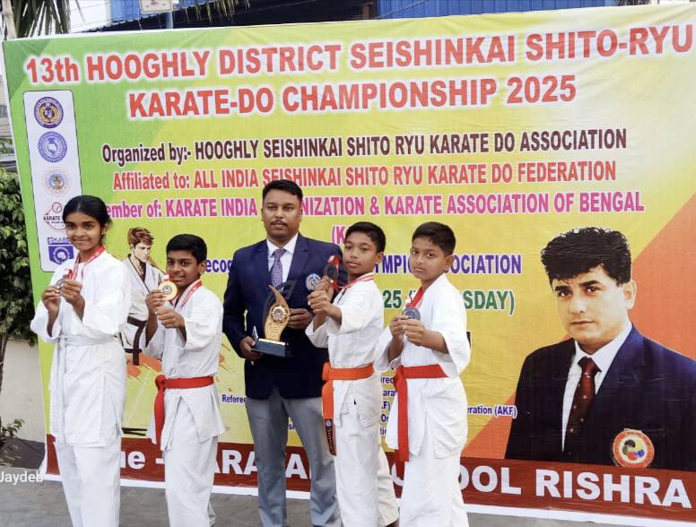 Our students have participated in 16 groups out of 44 groups and achieved 3 Gold and 9 Bronze Medals in the Karate Championship 2025 at Rishra Narayana School, Rishra, Hooghly organised by the Hooghly District Seishinkai Shito-Ryu Karate – Do Fedaration. Best of luck to all of you.